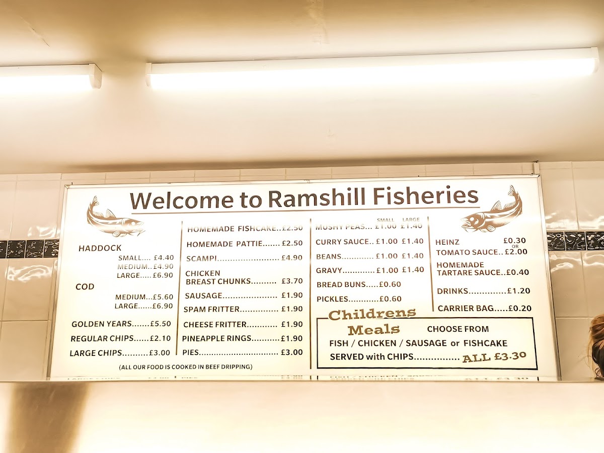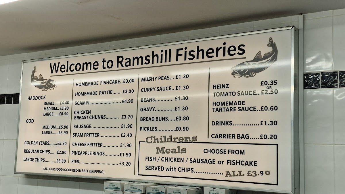 The menu at Ramshill Fisheries at 21 Ramshill Rd, Scarborough, delivers classic British comfort with a focus on quality and generous portions. The Chips are perfectly crisp on the outside and fluffy inside, serving as the ideal companion to the star of the menu, the Large Cod, which boasts a golden, crunchy batter that encases tender, flaky fish. Beyond the iconic fish and chips, the menu showcases hearty options like the traditional Steak and Kidney Pudding, rich and satisfying with a perfectly cooked filling wrapped in a soft, buttery suet crust. Each dish is thoughtfully prepared to highlight authentic flavors while maintaining a comforting familiarity, making Ramshill Fisheries a dependable spot for both quick takeaways and a nostalgic indulgence in time-honored British favorites. The straightforward menu emphasizes consistency and flavor, ensuring that every visit delivers a satisfying experience for lovers of classic seafood and hearty pub-style dishes.